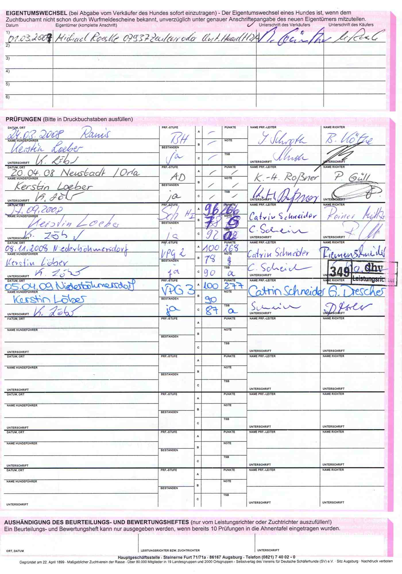 Körschein Xita von Gräfental (zum vergrößern bitte auf das Bild klicken)